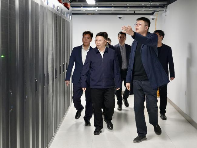 丁应虎一行参观调研了四川云控大数据机房和机电运维中心,现场听取了四川云控工作人员关于绕西算力中心建设情况以及“1+7”平台研发与应用成效的详细汇报,并深入了解了数据资产相关工作。