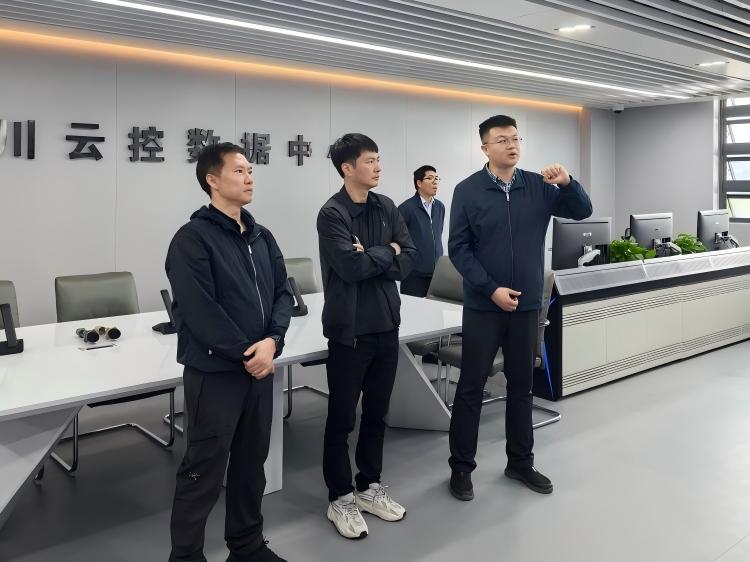 孙居峰一行实地参观了蜀道大数据中心机房与云控数据中心,近距离察看了核心硬件设施、数据存储系统及数字化业务平台。通过现场讲解与演示,全面了解四川云控在大数据、云计算、智慧交通及口岸信息化领域的技术储备、建设交付与运营能力。孙居峰对云控公司先进的基础设施与专业的技术实力给予高度认可。